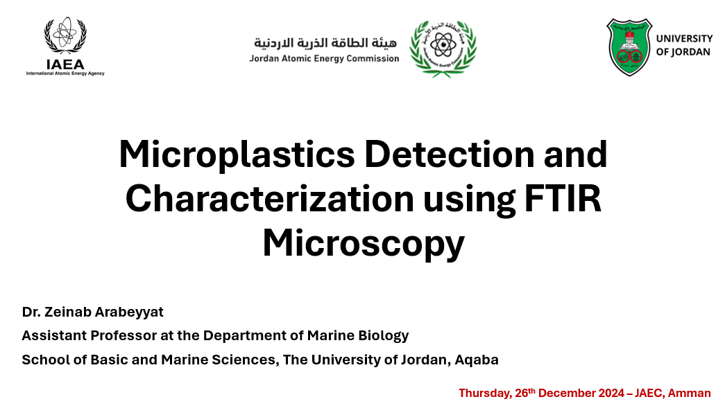 الدكتورة زينب عربيات تنفذ ورشة تدريبية متخصصة حول الكشف عن المايكروبلاستيك باستخدام FTIR في هيئة الطاقة الذرية الأردنية، 2024